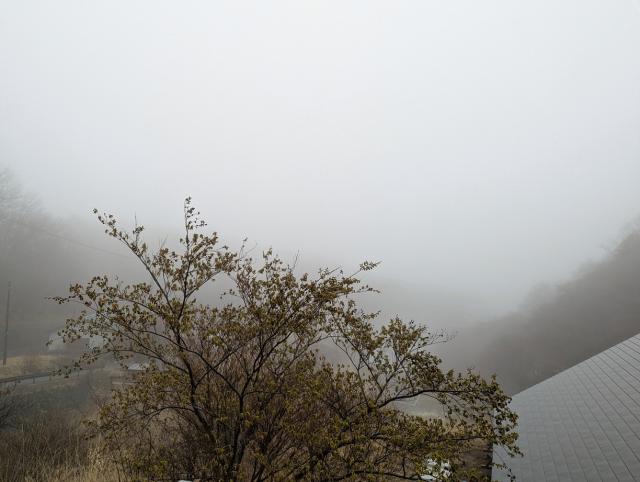 This morning in Takayu Onsen, there is a thick fog. The temperature is 5℃ and there is no wind.