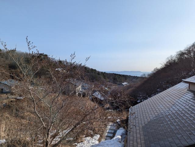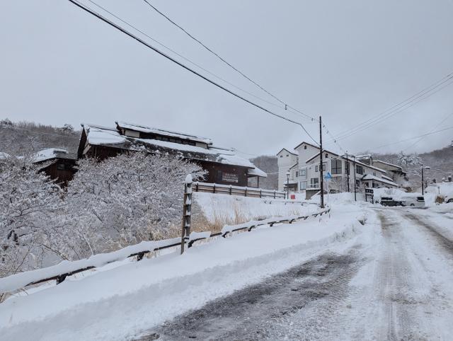There was light snow in Takayu Onsen this morning. The temperature was 4°C and there was no wind.