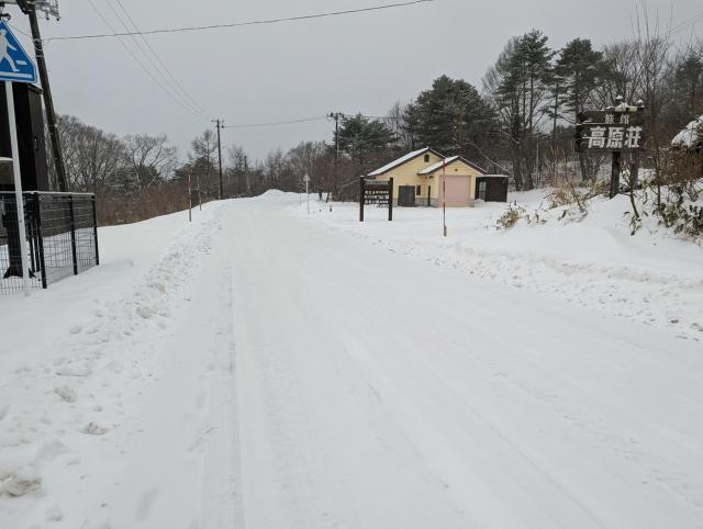 高湯温泉地内、一部で雪が残っています。冬タイヤでお越しください。