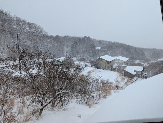 There was light snow in Takayu Onsen this morning. The temperature was 2°C and there was no wind.